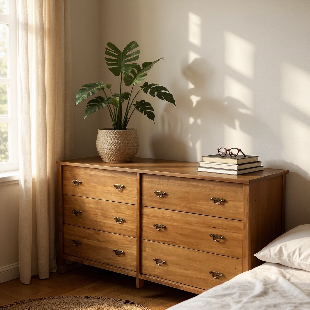 Esta cajonera alta refleja la armonía del estilo Japandi, guías telescópicas asegurando un deslizamiento suave y preciso.